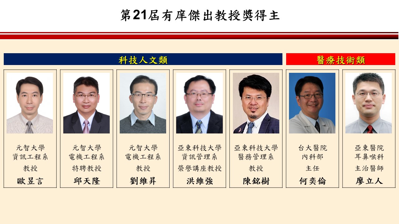 屆有庠元智講座暨第二十一屆有庠傑出教授獎得獎名單!!