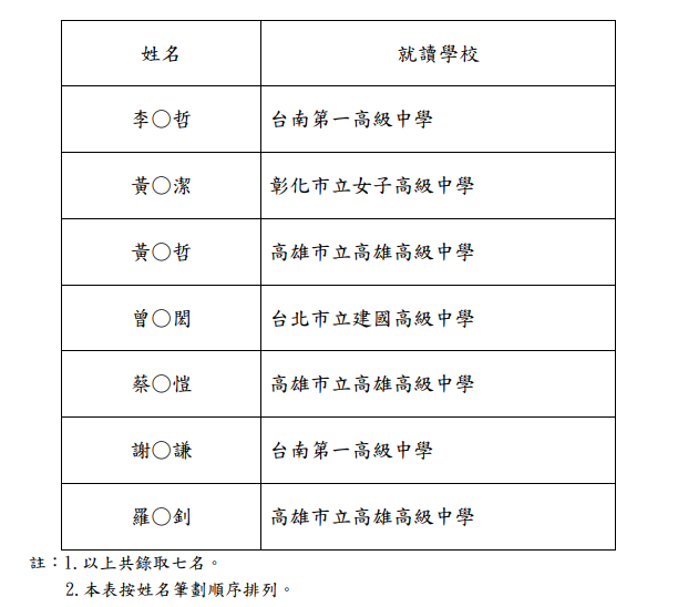 第 38 屆國際青年物理學家辯論錦標賽代表隊培訓名單