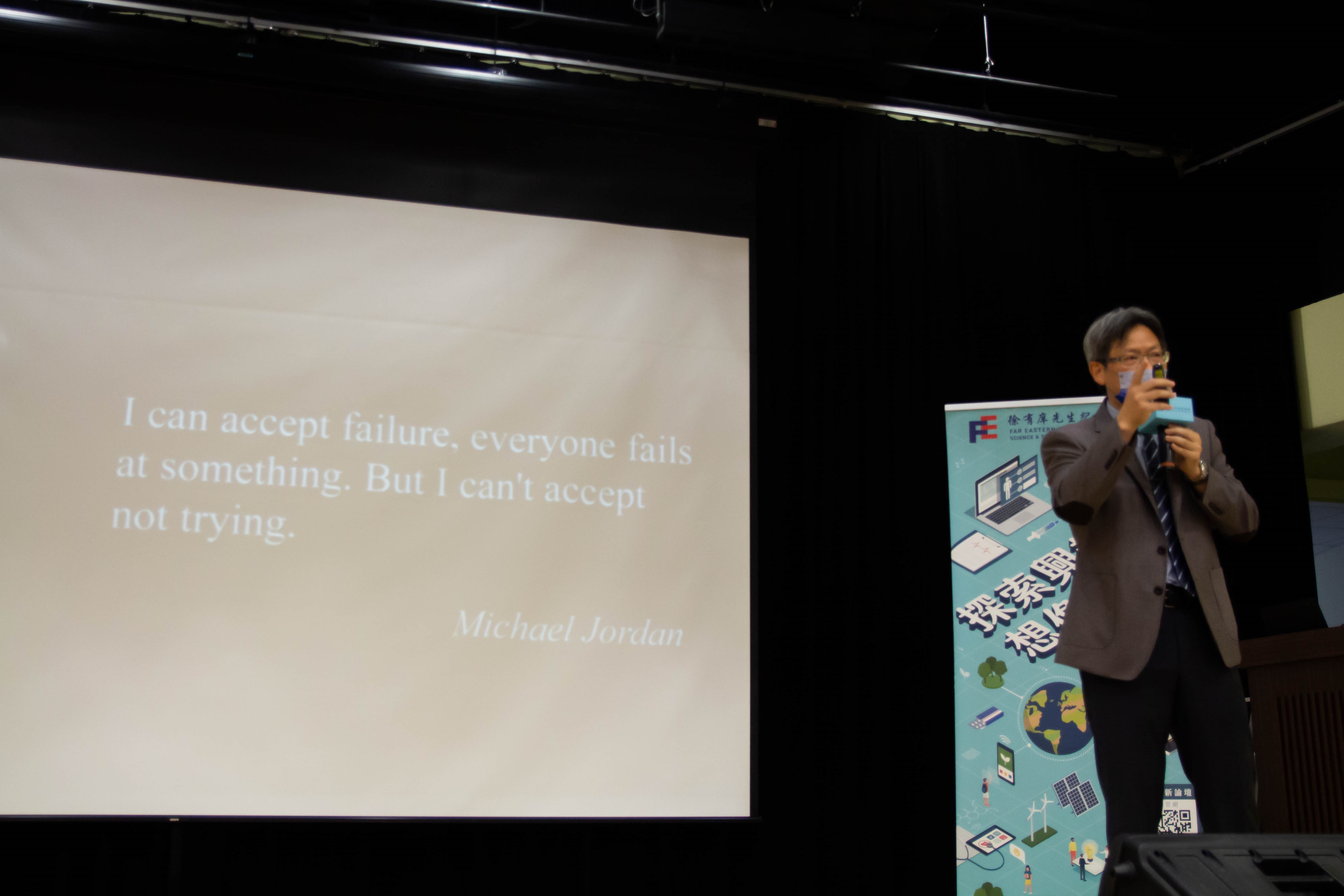 陳永富副校長分享自己碩一交出第一份英文報告後,遇到的挫折與重新研讀英文文法基礎的例子,帶出「溫故而知新」的重要性,科研很容易熱衷追求新知新事物,殊不知基礎更為關鍵,不時回頭確認根本,才有新動能。